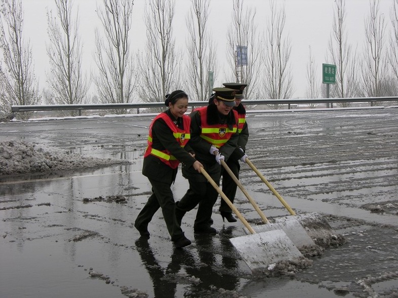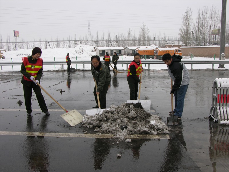 在除雪工作中,表現(xiàn)最為突出的李超、楊鑫兩位同志,發(fā)揚不怕苦、不怕累的過硬作風(fēng),一個勁兒地埋頭干活,被冰冷的雪水浸透的靴子也顧不得換。其他同志也不甘落后,揮舞著掃把和推雪板,斗志昂揚地投入到除雪工作中,特別是一些女同志,沒有絲毫的叫苦叫累,爭先恐后,忘我勞動,充分體現(xiàn)出了“巾幗不讓須眉”的豪情。