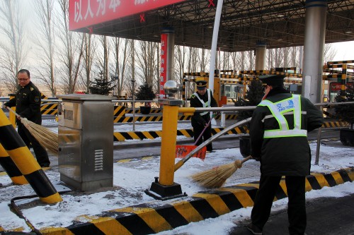宣化東收費站做好站區(qū)除雪保暢及車輛交通管制工作