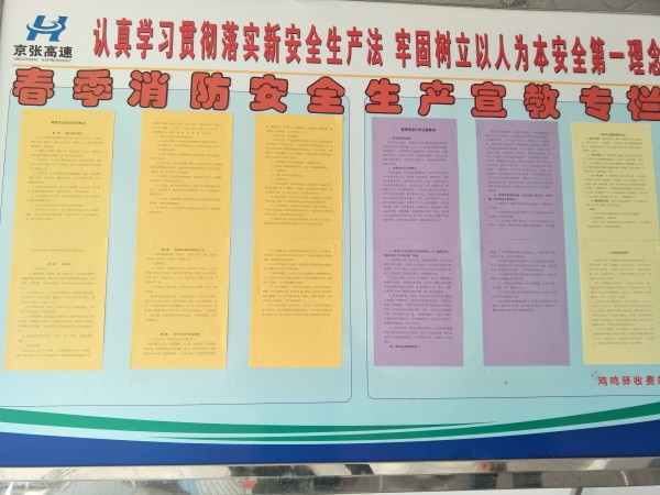 為增強(qiáng)廣大職工春季消防安全意識(shí),提高自我保護(hù)的能力,將全站安全生產(chǎn)工作做到防患于未然,雞鳴驛收費(fèi)站根據(jù)季節(jié)特點(diǎn),開展了春季安全生產(chǎn)宣傳教育工作,制作了以春季高速路行車安全、消防安全知識(shí)、滅火器的使用、日常安全生活小貼示為內(nèi)容的安全生產(chǎn)宣傳教育專欄展示板,展板內(nèi)容簡(jiǎn)潔凝練、易懂易記。寓教于樂的學(xué)習(xí)方式更易被大家接受,提高了廣大職工學(xué)習(xí)的興趣。通過對(duì)專欄內(nèi)容的學(xué)習(xí),重新熟悉了干粉滅火器的使用方法、使用技巧;同時(shí),以學(xué)習(xí)筆記的形式,再次熟悉了公司各項(xiàng)安全生產(chǎn)制度及法律法規(guī),并要求大家要照章執(zhí)行。通過宣傳教育,明確了做好春季安全生產(chǎn)工作的重點(diǎn),有利于安全生產(chǎn)工作的更好開展。(雞鳴驛收費(fèi)站 王春燕)